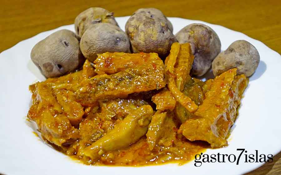 Cocina tradicional canaria, sí, y con mayúsculas. Esta receta, maestra en las lides del complacer al paladar, es el resultado puro de la cultura gastronómica de un pueblo, de una tradición culinaria singular, de aprovechar lo que el medio nos da.